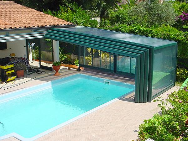 Mono 200-1La larghezza standard della copertura MONO 200-1 è di 5,5 m (dimensioni esterne - vedi le caratteristiche tecniche), con profili rinforzarti e di diversa costruzione anche di più; su specifica richiesta possiamo offrire anche coperture di maggiore larghezza oppure vi proporremmo un altro tipo di copertura. L'altezza della copertura può variare secondo le vostre esigenze. Sono a disposizione diversi accessori: vetrata laterale a scelta, possibilità d'installazione di motorizzazione elettrica, possibilità d'installazione (in alcuni casi) di binari speciali in acciaio inox per la movimentazione della copertura, il tetto può essere oscurato, ecc. La forma e le dimensioni della copertura si adattano perfettamente alle vostre necessità ed esigenze. Per altre informazioni vedere le caratteristiche tecniche delle coperture STRONG LINE. |