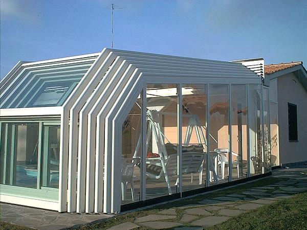 Mono 180-2La larghezza standard della copertura MONO 180-2 è di 6,5 m (dimensioni esterne - vedi le caratteristiche tecniche), con profili rinforzarti e di diversa costruzione anche di più; su specifica richiesta possiamo offrire anche coperture di maggiore larghezza oppure vi proporremmo un altro tipo di copertura. L'altezza della copertura può variare secondo le vostre esigenze. Sono a disposizione diversi accessori: vetrata laterale a scelta, possibilità d'installazione di motorizzazione elettrica, possibilità d'installazione (in alcuni casi) di binari speciali in acciaio inox per la movimentazione della copertura, il tetto può essere oscurato, ecc. La forma e le dimensioni della copertura si adattano perfettamente alle vostre necessità ed esigenze. Per altre informazioni vedere le caratteristiche tecniche delle coperture STRONG LINE. |