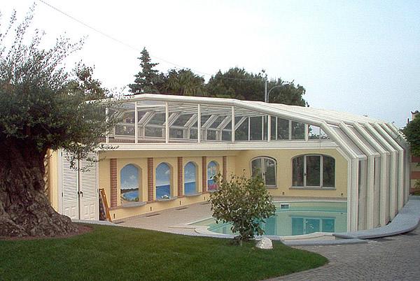 Mono 180-3La larghezza standard della copertura MONO 180-3 è di 10 m (dimensioni esterne - vedi le caratteristiche tecniche), con profili rinforzarti e di diversa costruzione anche di più; su specifica richiesta possiamo offrire anche coperture di maggiore larghezza oppure vi proporremmo un altro tipo di copertura. L'altezza della copertura può variare secondo le vostre esigenze. Sono a disposizione diversi accessori: vetrata laterale a scelta, possibilità d'installazione di motorizzazione elettrica, possibilità d'installazione (in alcuni casi) di binari speciali in acciaio inox per la movimentazione della copertura, il tetto può essere oscurato, ecc. La forma e le dimensioni della copertura si adattano perfettamente alle vostre necessità ed esigenze. Per altre informazioni vedere le caratteristiche tecniche delle coperture STRONG LINE. |